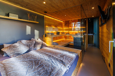 Interior: Sauna, Badezimmer, Ruhebereich mit Liegewiese & Coffeebar